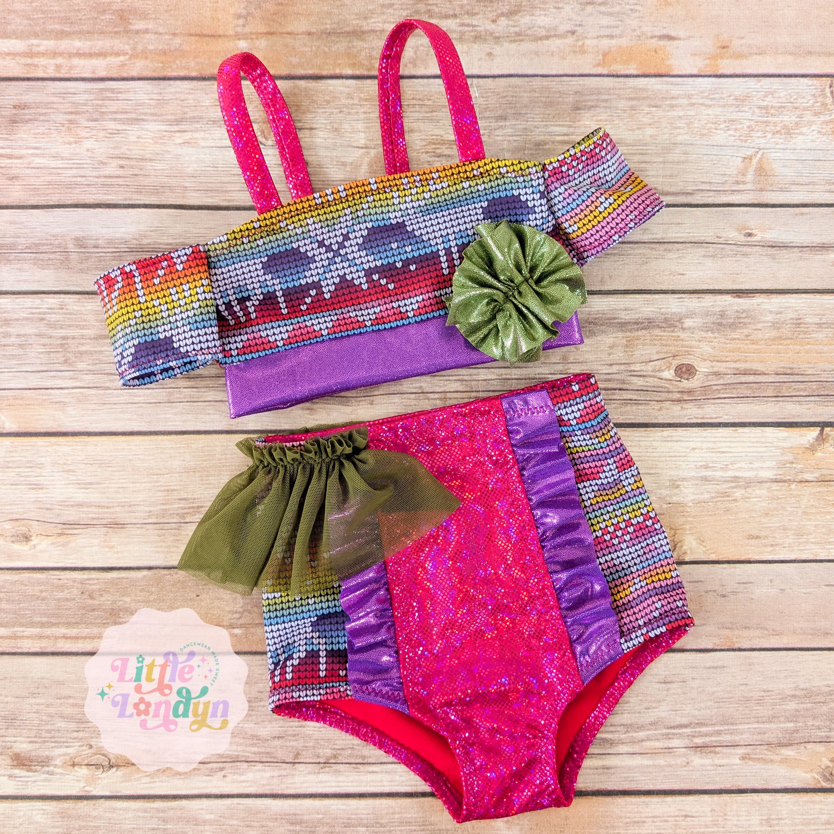 Cuffed crop style top with high waisted bottoms.